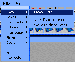 First create a subdivided plane: Create > Polygon Primitives > Plane and adjust the sizes and subdivisions: ![]() The plane should be horizontal: ![]() Tip: The resulting animation quality is often better if you use quadrangles instead of triangles. Convert the polygonal shape to a cloth object using: Syflex > Cloth > Create Cloth ![]() Adjust the default values to look like this: ![]() To assign forces or constraints, you'll need to select the cloth. Selecting the cloth can be done in 3 ways: