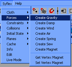 To create a force field on the cloth, select the cloth, and chose a force in the menu: Syflex > Forces. Assign a Gravity field to the cloth: first select the cloth, then select: Syflex > Forces > Create Gravity ![]() In the Channel Box, change the Gravity Y field to -0.17 The gravity intensity depends on the units used in your scene. For additional details on what the value should be in your case, read in the reference guide the gravity force (accessible through the help Maya menu). In the same way, assign a damping force: Select the cloth (click on the plane in the 3D window), and select: Syflex > Forces > Create Damp Throughout the simulator, there are many damping coefficients, and understanding the role of each is important. This damping force is a global viscous force that slows down the movements because of the air resistance. It is essential to add this force to avoid infinite oscillations. But you should keep it small. For instance on a shirt, if this coefficient is too high, the cloth will appear to be dragging behind the character. Another similar force is the air damping force. It is a bit more accurate because it takes into account the orientation of the face: This force will be highest on a face perpendicular to its motion direction. The 3 spring dampings in the cloth attribute page dissipate energy due to internal frictions. Increase them to avoid vibrations on the cloth. « Back Next » |